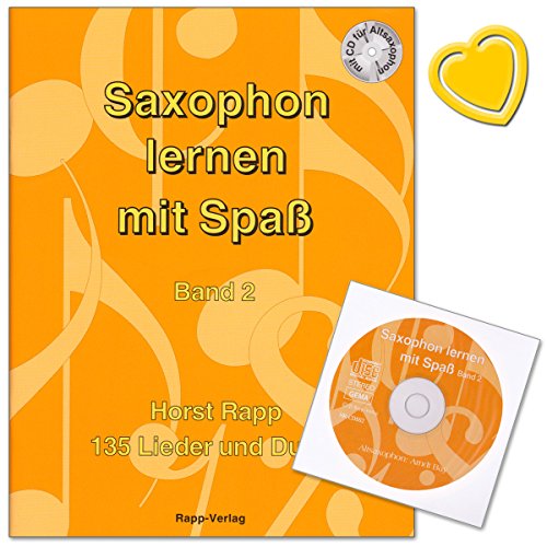 Saxophon lernen mit Spaß Band 2 von Horst Rapp - 135 Lieder und Duette mit CD und bunter herzförmi